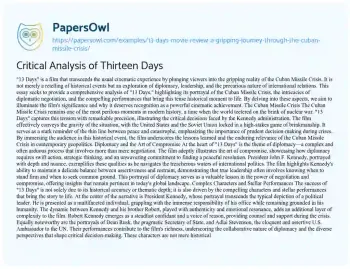 Critical Analysis of Thirteen Days. (2023, Sep 18). Retrieved from https://hub.papersowl.com/examples/13-days-movie-review-a-gripping-journey-through-the-cuban-missile-crisis/