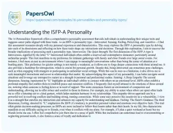 Understanding the ISFP-A Personality. (2022, Aug 18). Retrieved from https://hub.papersowl.com/examples/16-personalities-and-personality-types/