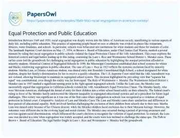 This essay explores the historical context and legal battles leading up to this ruling, examining the Lum v. Rice and Westminster School District v. Mendez cases. These earlier cases laid the groundwork for challenging racial segregation in public education by highlighting the unequal protection afforded to minority students.