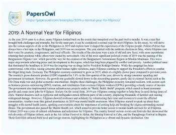 2019: A Normal Year for Filipinos. (2025, Jul 26). Retrieved from https://hub.papersowl.com/examples/2019-a-normal-year-for-filipinos/