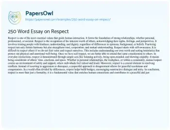 250 Word Essay on Respect. (2025, Jul 20). Retrieved from https://hub.papersowl.com/examples/250-word-essay-on-respect/