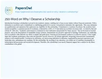 250-Word on Why I Deserve a Scholarship. (2024, Dec 27). Retrieved from https://hub.papersowl.com/examples/250-word-on-why-i-deserve-a-scholarship/