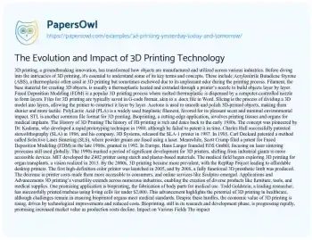 The Evolution and Impact of 3D Printing Technology. (2020, Apr 22). Retrieved from https://hub.papersowl.com/examples/3d-printing-yesterday-today-and-tomorrow/