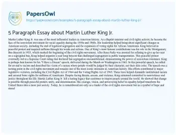 5 Paragraph Essay about Martin Luther King Jr.. (2025, Apr 24). Retrieved from https://hub.papersowl.com/examples/5-paragraph-essay-about-martin-luther-king-jr/