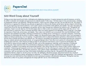 500 Word Essay about Yourself. (2025, Mar 29). Retrieved from https://hub.papersowl.com/examples/500-word-essay-about-yourself/