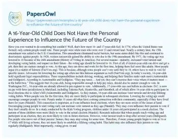 A 16-Year-Old Child Does Not Have the Personal Experience to Influence the Future of the Country. (2022, Aug 23). Retrieved from https://hub.papersowl.com/examples/a-16-year-old-child-does-not-have-the-personal-experience-to-influence-the-future-of-the-country/