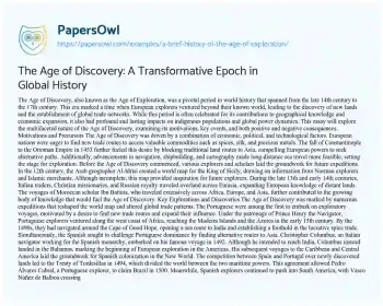 The Age of Discovery: A Transformative Epoch in Global History. (2021, Mar 23). Retrieved from https://hub.papersowl.com/examples/a-brief-history-of-the-age-of-exploration/