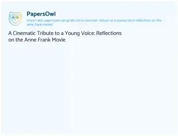 A Cinematic Tribute to a Young Voice: Reflections on the Anne Frank Movie. (2024, Jul 21). Retrieved from https://hub.papersowl.com/examples/a-cinematic-tribute-to-a-young-voice-reflections-on-the-anne-frank-movie/
