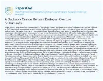 A Clockwork Orange: Burgess' Dystopian Overture on Humanity. (2024, Feb 20). Retrieved from https://hub.papersowl.com/examples/a-clockwork-orange-burgess-dystopian-overture-on-humanity/