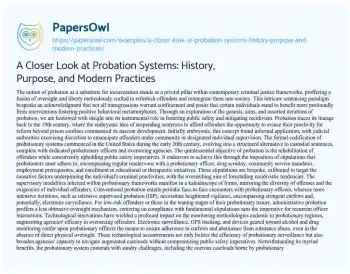 A Closer Look at Probation Systems: History, Purpose, and Modern Practices. (2024, Mar 01). Retrieved from https://hub.papersowl.com/examples/a-closer-look-at-probation-systems-history-purpose-and-modern-practices/