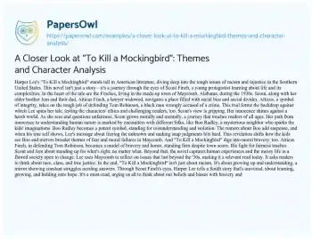 A Closer Look at "To Kill a Mockingbird": Themes and Character Analysis. (2024, Jun 28). Retrieved from https://hub.papersowl.com/examples/a-closer-look-at-to-kill-a-mockingbird-themes-and-character-analysis/