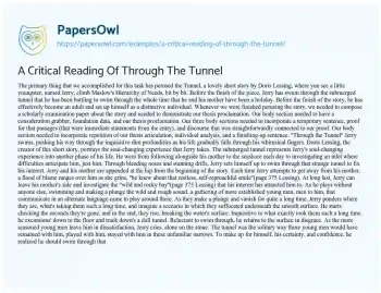 This essay will offer a critical analysis of Doris Lessing’s short story “Through The Tunnel.” It will examine the themes of maturity, independence, and the transition from childhood to adolescence. The piece will analyze the protagonist’s journey and the symbolism of the tunnel in the story. PapersOwl showcases more free essays that are examples of American Literature.