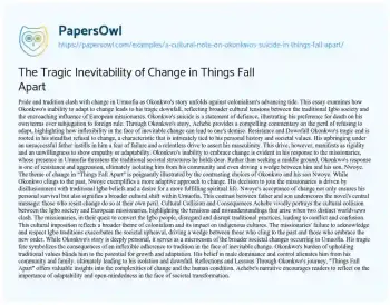 Pride and tradition clash with change in Umuofia as Okonkwo's story unfolds against colonialism's advancing tide. This essay examines how Okonkwo's inability to adapt to change leads to his tragic downfall, reflecting broader cultural tensions between the traditional Igbo society and the encroaching influence of European missionaries. Okonkwo's suicide is a statement of defiance, illustrating his preference for death on his own terms over subjugation to foreign rule. Through Okonkwo's story, Achebe provides a compelling commentary on the peril of refusing to adapt, highlighting how inflexibility in the face of inevitable change can lead to one's demise.