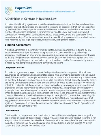 A Definition of Contract in Business Law. (2022, Jun 26). Retrieved from https://hub.papersowl.com/examples/a-definition-of-contract-in-business-law/