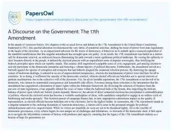A Discourse on the Government: The 17th Amendment. (2024, Mar 01). Retrieved from https://hub.papersowl.com/examples/a-discourse-on-the-government-the-17th-amendment/
