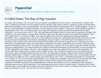 A Failed Dawn: The Bay of Pigs Invasion. (2024, Jul 21). Retrieved from https://hub.papersowl.com/examples/a-failed-dawn-the-bay-of-pigs-invasion/