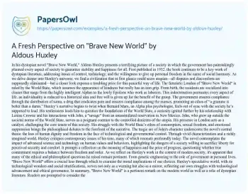 A Fresh Perspective on "Brave New World" by Aldous Huxley. (2024, May 12). Retrieved from https://hub.papersowl.com/examples/a-fresh-perspective-on-brave-new-world-by-aldous-huxley/