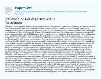 Pneumonia: An Evolving Threat and Its Management. (2022, Dec 15). Retrieved from https://hub.papersowl.com/examples/a-history-of-pneumonia-and-its-symptoms-and-proper-treatment/
