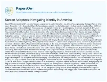Korean Adoptees: Navigating Identity in America. (2021, May 17). Retrieved from https://hub.papersowl.com/examples/a-korean-adoptees-experience/