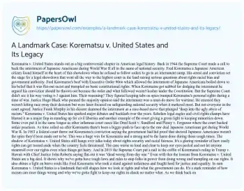 A Landmark Case: Korematsu v. United States and Its Legacy. (2024, Jul 06). Retrieved from https://hub.papersowl.com/examples/a-landmark-case-korematsu-v-united-states-and-its-legacy/