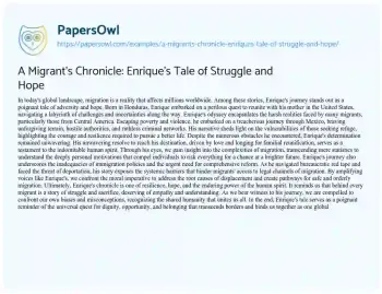A Migrant's Chronicle: Enrique's Tale of Struggle and Hope. (2024, Mar 12). Retrieved from https://hub.papersowl.com/examples/a-migrants-chronicle-enriques-tale-of-struggle-and-hope/