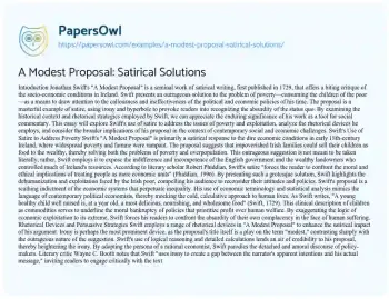 A Modest Proposal: Satirical Solutions. (2024, Dec 27). Retrieved from https://hub.papersowl.com/examples/a-modest-proposal-satirical-solutions/