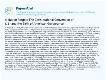 A Nation Forged: The Constitutional Convention of 1787 and the Birth of American Governance. (2024, Jun 17). Retrieved from https://hub.papersowl.com/examples/a-nation-forged-the-constitutional-convention-of-1787-and-the-birth-of-american-governance/