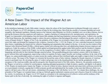 A New Dawn: The Impact of the Wagner Act on American Labor. (2024, May 28). Retrieved from https://hub.papersowl.com/examples/a-new-dawn-the-impact-of-the-wagner-act-on-american-labor/