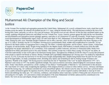 Muhammad Ali: Champion of the Ring and Social Justice. (2020, Nov 03). Retrieved from https://hub.papersowl.com/examples/a-newly-renowned-boxer-muhammad-ali/