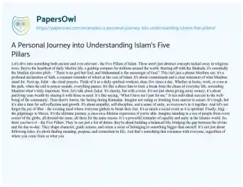 A Personal Journey into Understanding Islam's Five Pillars. (2024, Feb 01). Retrieved from https://hub.papersowl.com/examples/a-personal-journey-into-understanding-islams-five-pillars/