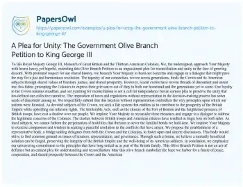 A Plea for Unity: The Government Olive Branch Petition to King George III. (2024, Feb 01). Retrieved from https://hub.papersowl.com/examples/a-plea-for-unity-the-government-olive-branch-petition-to-king-george-iii/