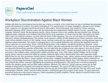 Workplace Discrimination Against Black Women. (2020, Feb 25). Retrieved from https://hub.papersowl.com/examples/a-problem-of-social-justice-in-world/