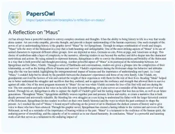 A Reflection on "Maus". (2025, Oct 31). Retrieved from https://hub.papersowl.com/examples/a-reflection-on-maus/