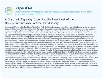 A Rhythmic Tapestry: Exploring the Heartbeat of the Harlem Renaissance in America's History. (2024, Mar 01). Retrieved from https://hub.papersowl.com/examples/a-rhythmic-tapestry-exploring-the-heartbeat-of-the-harlem-renaissance-in-americas-history/