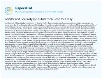 Gender and Sexuality in Faulkner's 'A Rose for Emily'. (2021, Apr 19). Retrieved from https://hub.papersowl.com/examples/a-rose-for-emily-theme/
