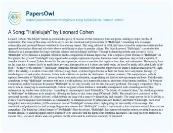 A Song: "Hallelujah" by Leonard Cohen. (2025, Mar 31). Retrieved from https://hub.papersowl.com/examples/a-song-hallelujah-by-leonard-cohen/