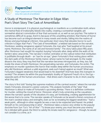 A Study of Montresor The Narrator in Edgar Allan Poe’s Short Story The Cask of Amontillado