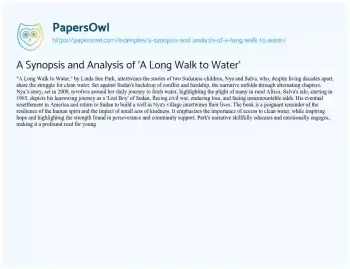 A Synopsis and Analysis of 'A Long Walk to Water'. (2024, Feb 05). Retrieved from https://hub.papersowl.com/examples/a-synopsis-and-analysis-of-a-long-walk-to-water/