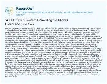 "A Tall Drink of Water": Unraveling the Idiom's Charm and Evolution. (2023, Nov 17). Retrieved from https://hub.papersowl.com/examples/a-tall-drink-of-water-unraveling-the-idioms-charm-and-evolution/