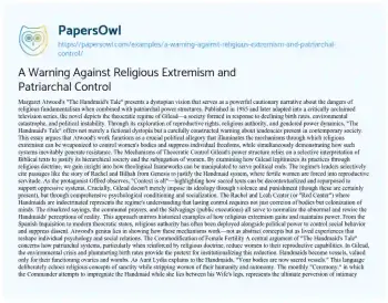 A Warning Against Religious Extremism and Patriarchal Control. (2025, Mar 30). Retrieved from https://hub.papersowl.com/examples/a-warning-against-religious-extremism-and-patriarchal-control/