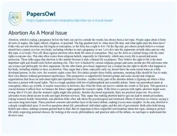 Abortion As A Moral Issue