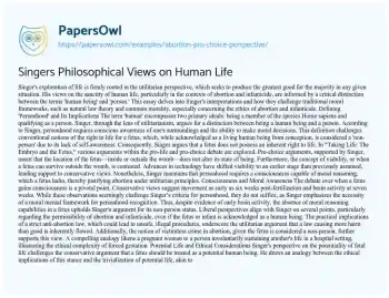 Singers Philosophical Views on Human Life. (2021, Apr 23). Retrieved from https://hub.papersowl.com/examples/abortion-pro-choice-perspective/