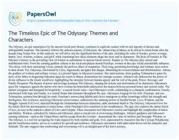 The Timeless Epic of The Odyssey: Themes and Characters. (2019, May 13). Retrieved from https://hub.papersowl.com/examples/about-the-odyssey-by-homer/