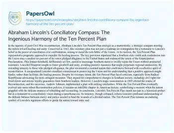 Abraham Lincoln's Conciliatory Compass: The Ingenious Harmony of the Ten Percent Plan. (2024, Mar 02). Retrieved from https://hub.papersowl.com/examples/abraham-lincolns-conciliatory-compass-the-ingenious-harmony-of-the-ten-percent-plan/