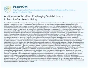 Abstinence as Rebellion: Challenging Societal Norms in Pursuit of Authentic Living