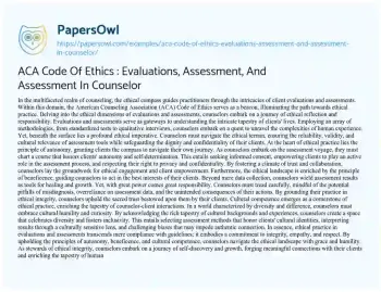 ACA Code Of Ethics : Evaluations, Assessment, And Assessment In Counselor. (2024, Apr 22). Retrieved from https://hub.papersowl.com/examples/aca-code-of-ethics-evaluations-assessment-and-assessment-in-counselor/