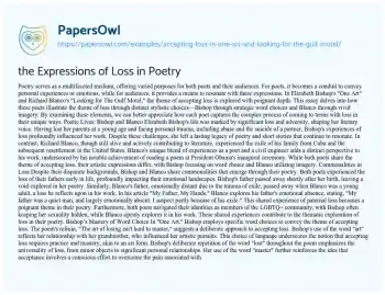 the Expressions of Loss in Poetry. (2021, Mar 25). Retrieved from https://hub.papersowl.com/examples/accepting-loss-in-one-art-and-looking-for-the-gulf-motel/