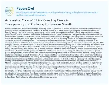 Accounting Code of Ethics: Guarding Financial Transparency and Fostering Sustainable Growth. (2023, Sep 13). Retrieved from https://hub.papersowl.com/examples/accounting-code-of-ethics-guarding-financial-transparency-and-fostering-sustainable-growth/