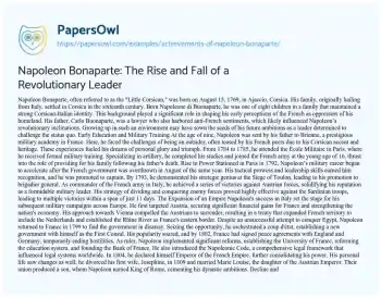 Napoleon Bonaparte: The Rise and Fall of a Revolutionary Leader. (2021, Jun 03). Retrieved from https://hub.papersowl.com/examples/achievements-of-napoleon-bonaparte/