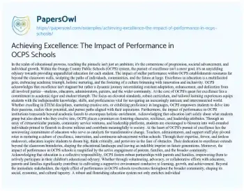 Order now OCPS acknowledges that excellence isn't stagnant but rather a dynamic journey necessitating constant adaptation, enhancement, and dedication from all involved parties—students, educators, administrators, parents, and the wider community.